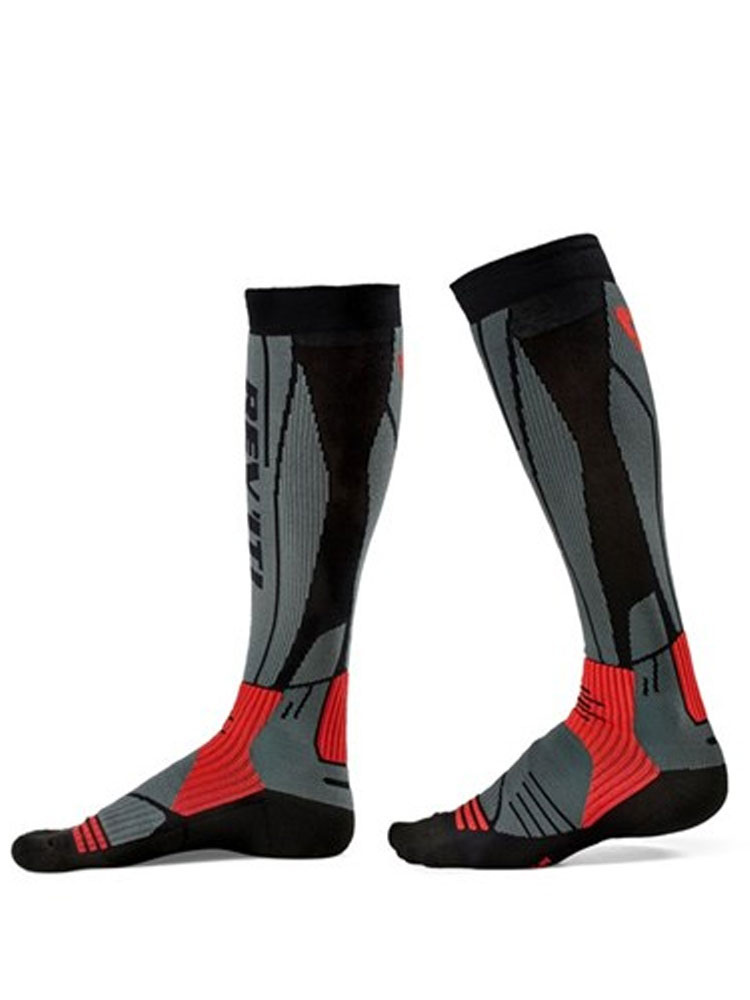 Skarpety motocyklowe Rev'IT! Andes zostały zaprojektowane tak, aby podczas jazdy w niskich temperaturach zapewnić wysoki komfort termiczny. Dopasowany krój idealnie przylega do stopy, a użyte materiały są przyjazne dla skóry, nie powodują podrażnień. Uniwersalna kolorystyka sprawia, że skarpety mogą nosić zarówno kobiety jak i mężczyźni. Skarpety charakteryzuje doskonałe odprowadzenie wilgoci, dzięki czemu stopy pozostają przyjemnie suche nawet w ekstremalnych sytuacjach. Dodatek w postaci naturalnej wełny merino zapewnia doskonałą izolację chroniąc stopy zarówno przed przegrzaniem jak i wychłodzeniem. Wsparcie podczas dłuższej jazdy zapewnia anatomicznie ukształtowana wkładka, która dodatkowo amortyzuje stopy. Skarpety dzięki wełnie hamują rozwój bakterii i powstawanie nieprzyjemnych zapachów co zapewnia utrzymanie długotrwałej świeżości. Skarpety sięgają do kolana i utrzymują się na miejscu za sprawą wygodnego i elastycznego ściągacza. Dodatkowo wyściełane obszary na goleniu, palcach oraz pięcie zapewniają komfortowe użytkowanie bez podrażnień.