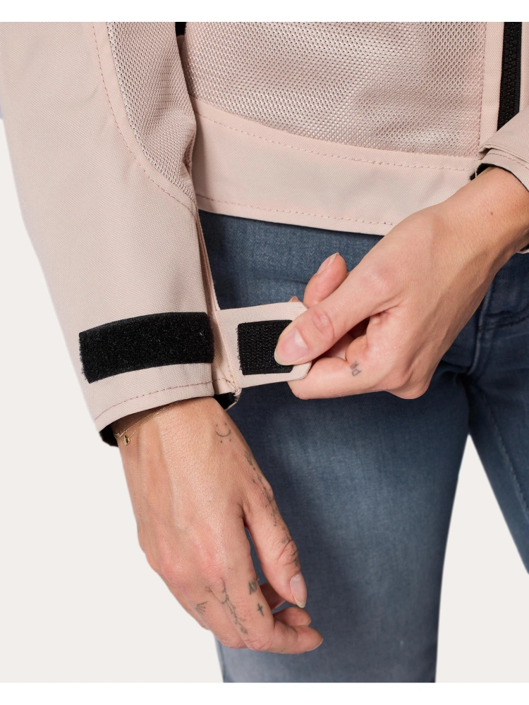 W pasie i na mankietach znajdują się rzepy do regulacji ich obwodu. Regulacja znajduje się również na rękawach. Kurtka posiada dodatkowe osłony przeciwwiatrowe na mankietach oraz za przednim zamkiem błyskawicznym. Miłym dodatkiem są specjalne pętelki, które pozwalają na spięcie kurtki z jeansami motocyklowymi. Dzięki temu unikniesz jazdy z odsłoniętymi plecami, a w razie upadku zyskasz dodatkową ochronę. Do dyspozycji masz dwie zewnętrzne kieszenie zapinane na zamek oraz jedną wewnętrzną.