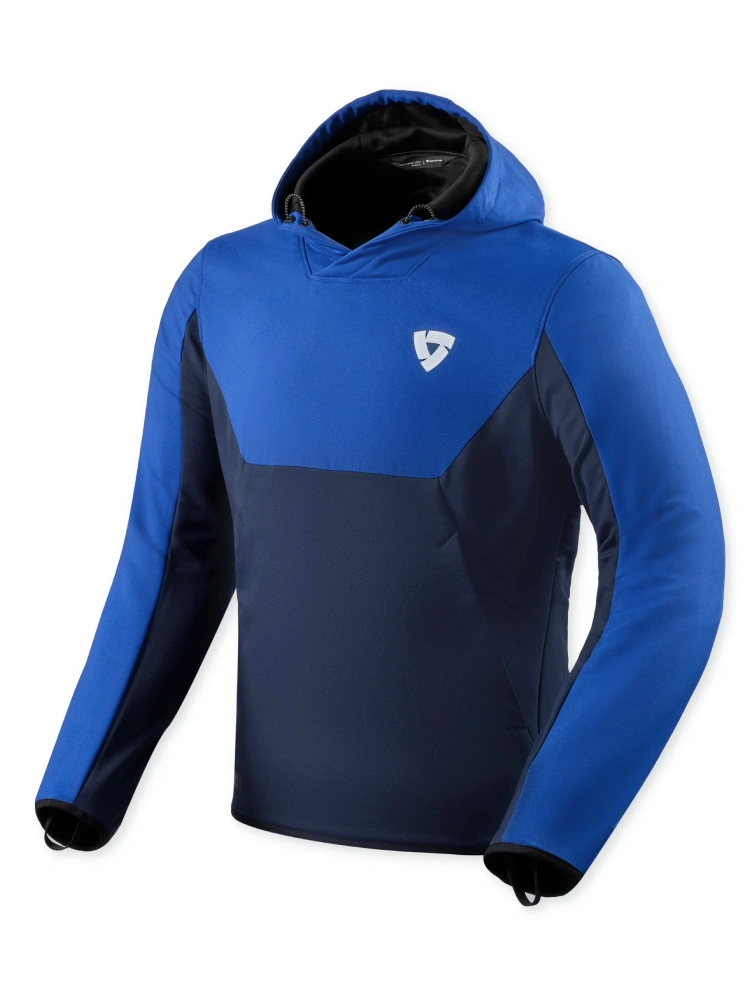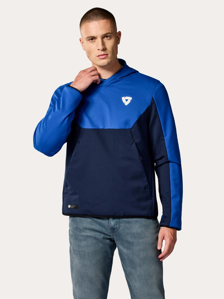 Praktyczność bluzy podkreślają takie elementy, jak regulowany kaptur z mocowaniem na guzik, aby nie przeszkadzał w czasie jazdy, pętle na kciuki oraz system umożliwiający szybkie spięcie z jeansami czy spodniami motocyklowymi za pomocą krótkiego zamka lub pętelki. Pojemna kieszeń na przodzie z bocznymi zamkami stanowi wygodne miejsce do przechowywania niezbędnych rzeczy w trasie, dzięki czemu wszystko masz zawsze pod ręką.